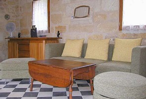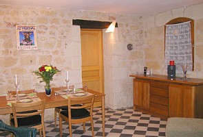 During the renovations, some of the stonework on the courtyard side had to be replaced. As one of the types of stones is no longer quarried in France, replacement stone from another renovation-in-progress was used – the Royal Abbey of Fontevraud, dating from the 12th century! Among the pile of stones were three ornately carved pieces which have been incorporated into the livingroom wall - over the objection of the mason that the stones could be shaved flat!