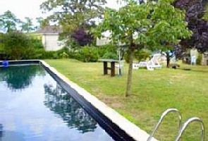 There is a large swimming pool in the backyard, making it a wonderful place to spend the warmer months.  At 22 meters in length, it is wide enough for two people to swim laps without getting in each other's way.  The deep end is 7 feet deep; the shallow, 4 feet.  The black liner provides passive solar heating and gives the pool a more natural aspect.  Please note that as pool access is by ladders rather than steps, it is not suitable for small children.